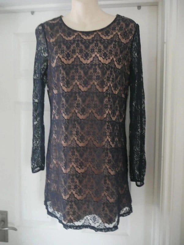 The Mela London Navy Blue Lace Dress Size 12 is available in sizes M.
