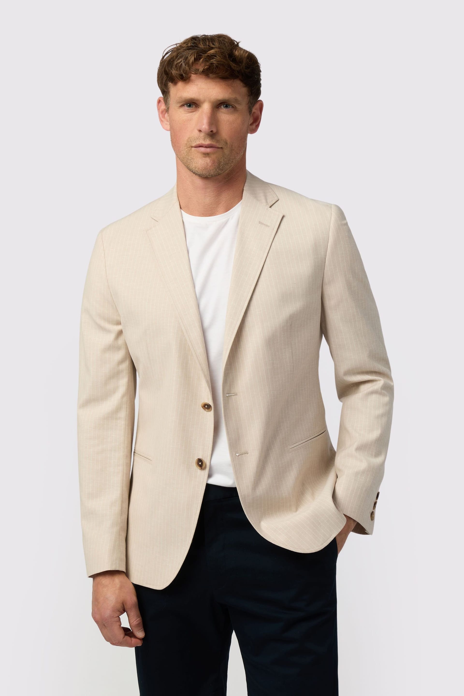 “Pair with dark wash chinos and a white crew-neck t-shirt for a smart-casual ensemble.”