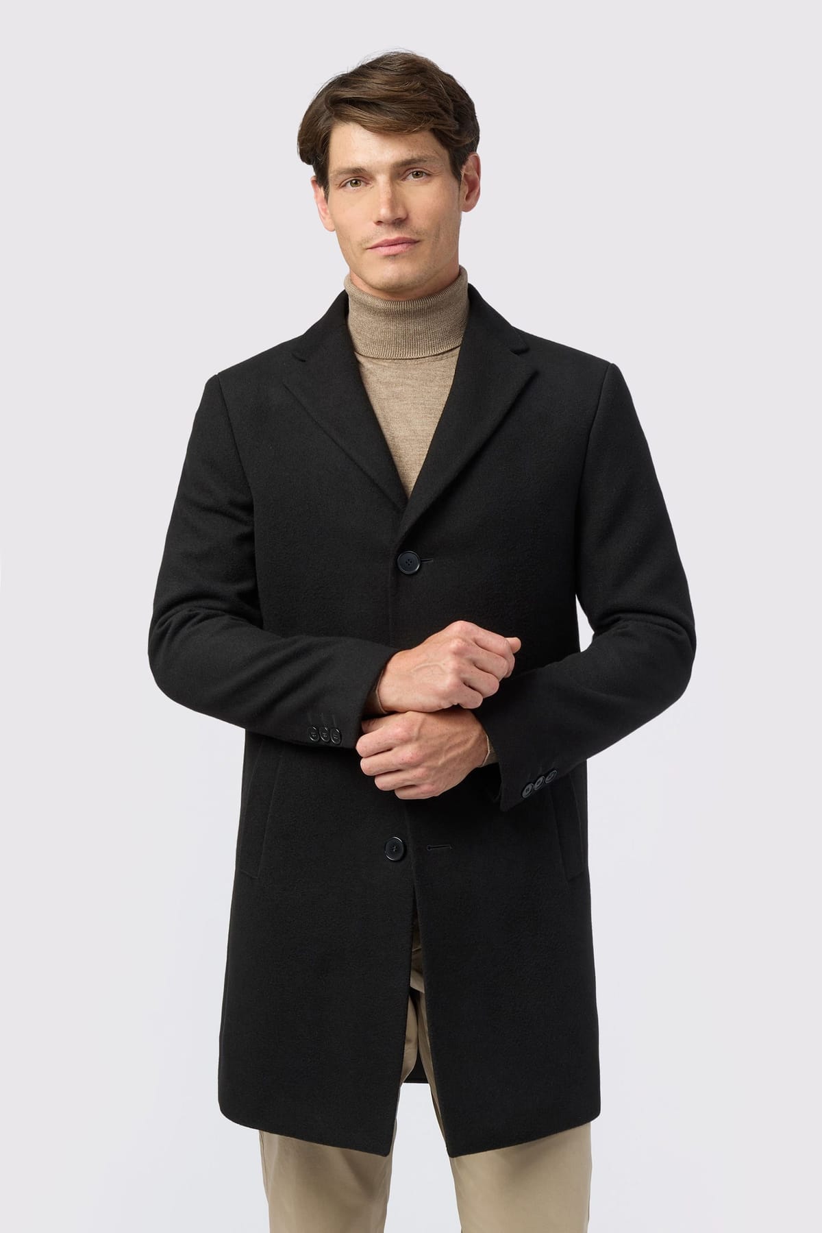 The Melka Men's Slim Fit Black Coat is made from wool, polyester.