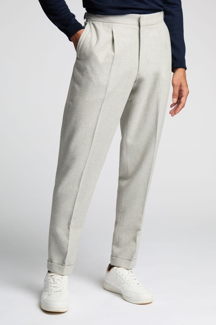 The Melka Men's Flannel Trousers With Turn Up in Grey is made from flannel.