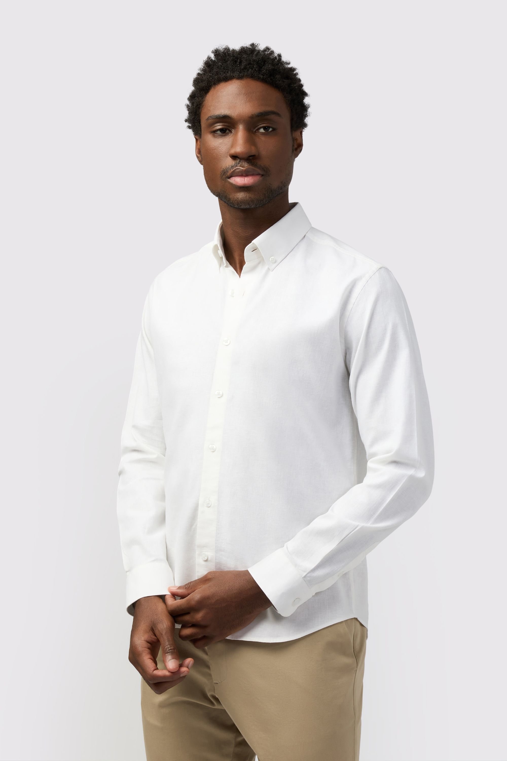 The Melka Men's White Linen Long Sleeve Shirt is made from linen.