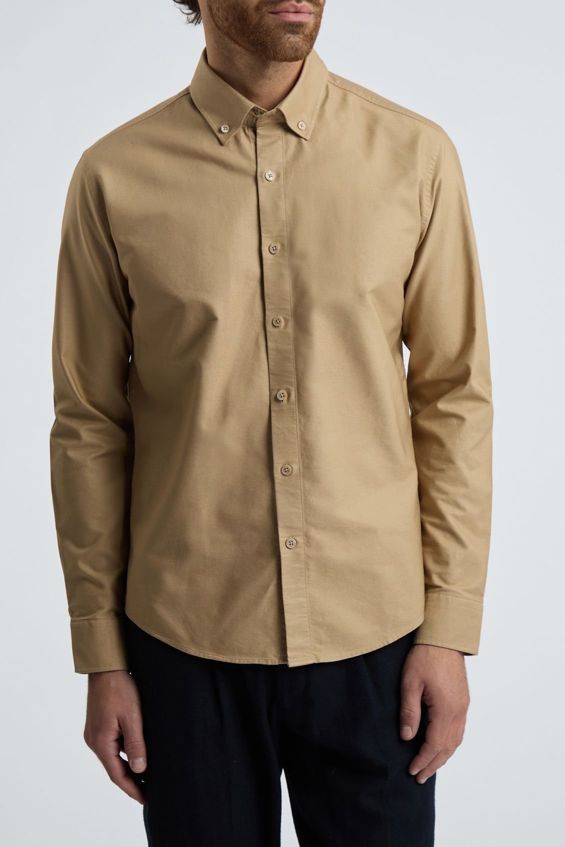 Stylish Melka yellow Oxford shirt crafted from washed Oxford cotton. Features a button-down collar and front button placket. Ideal for a casual look.