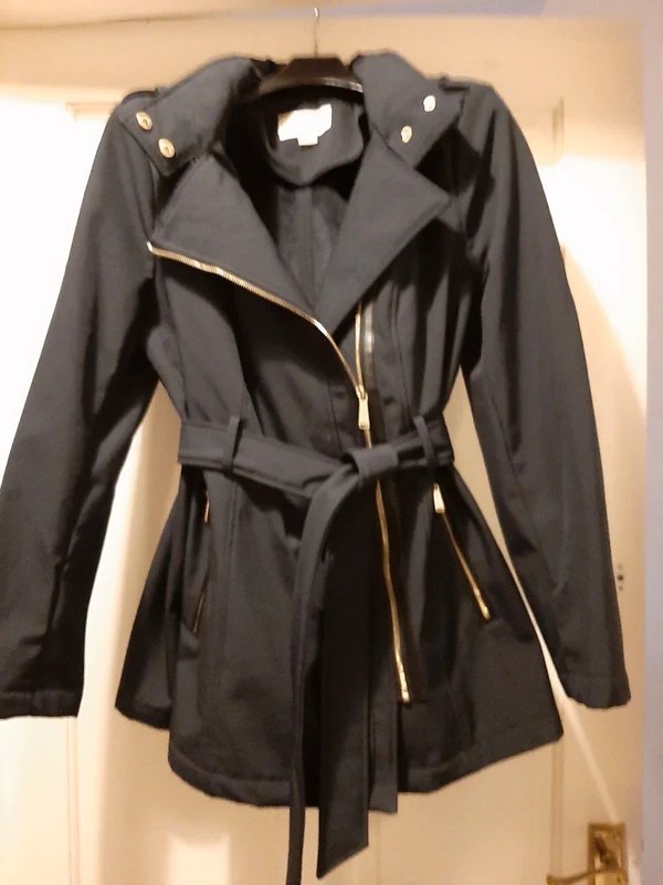 The Michael Kors Warm Navy Coat with Hood is available in sizes L.