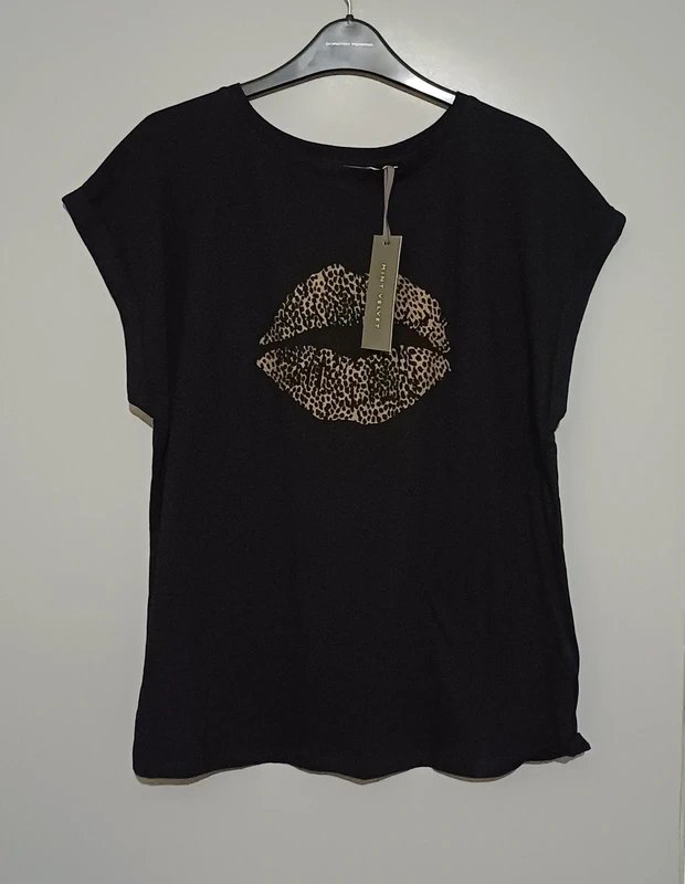 The Mint Velvet Black Leopard Print T-shirt is available in sizes L.