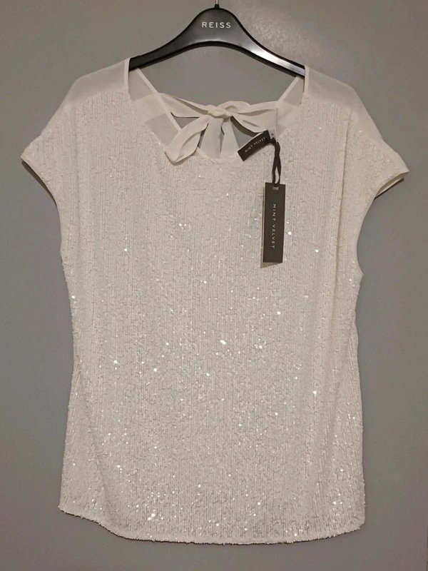 The Mint Velvet Cream Sequin Top is available in sizes M.