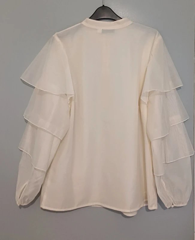 The Mint Velvet Elegant Organza Ruffle Sleeve Blouse in Cream is available in sizes L.
