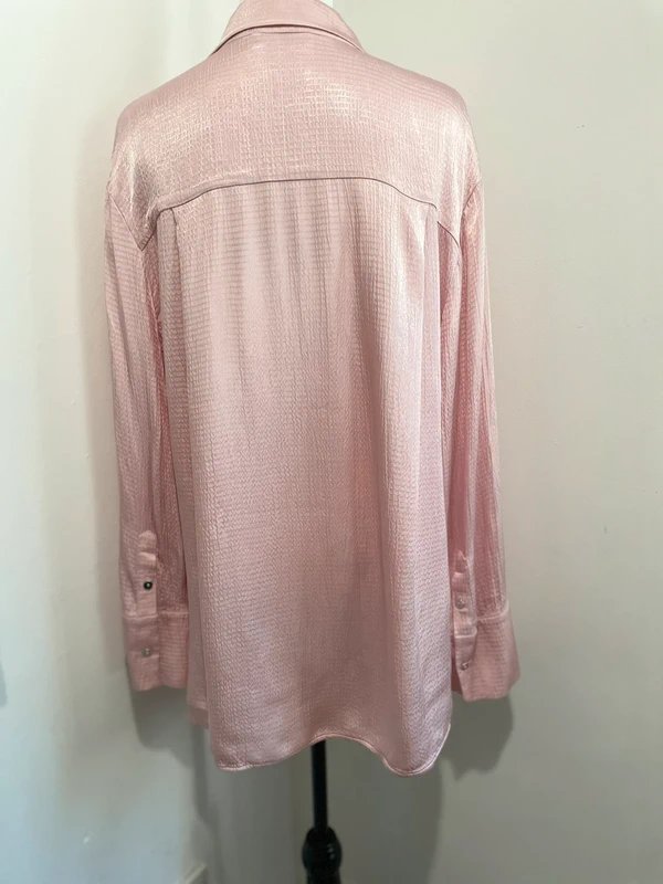 The Mint Velvet Pink Oversized Cuff Textured Shirt is made from textured satin.