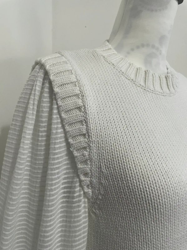 The Mint Velvet Crew Neck Knit Jumper with Fabric Sleeves in White is ideal for work, casual.