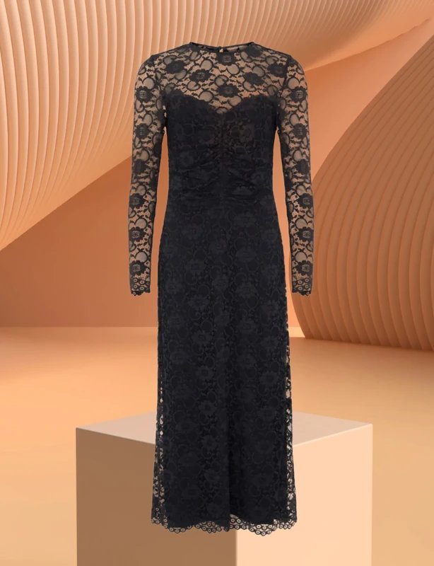 Black Long Sleeve Lace Ruched Midi Dress — the must-have occasion dress for Christmas parties, evening events, and festive gatherings. Designed in classic black, this long-sleeve midi dress features ruched detailing, a strapless neckline, and a flattering A-line silhouette. Crafted from luxurious velvet lace with intricate floral patterns, it exudes elegance and sophistication. Includes a full-length lining for comfort and coverage.