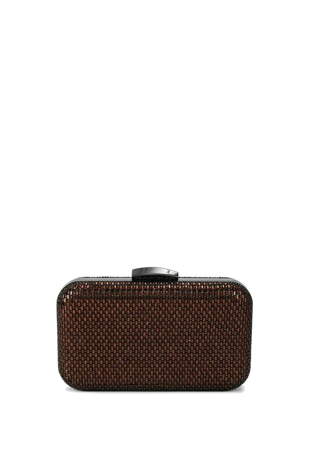 The Miss KG Brown Satin 'Fleur Box' Clutch Bag is made from satin, crystal.