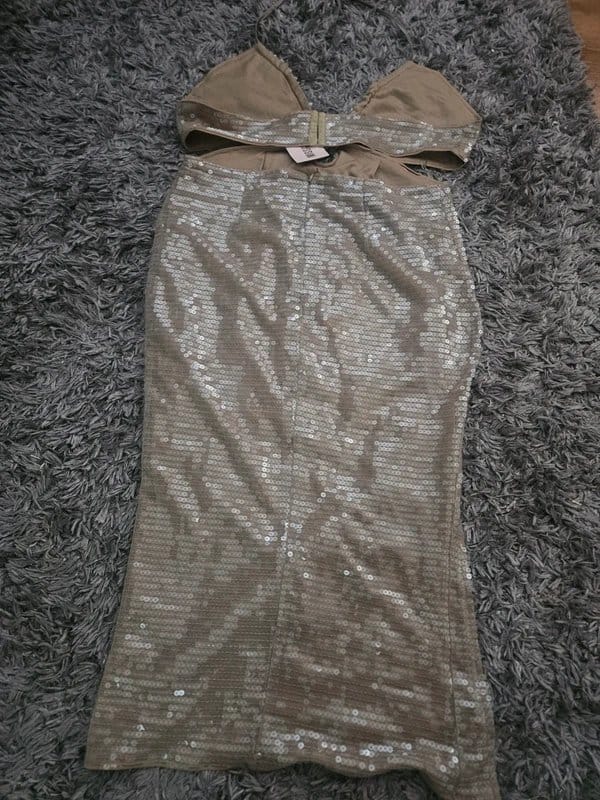 The Missguided Gold Sequin Cut Out Midi Dress Size 16 is available in sizes L.