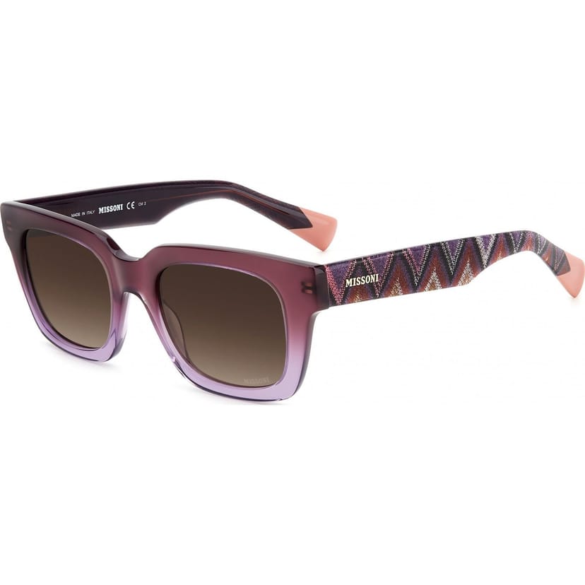 Stylish Missoni sunglasses in purple with a zig-zag temple detail. Made from durable materials, these sunglasses are perfect for everyday wear. The brown lenses provide excellent sun protection.