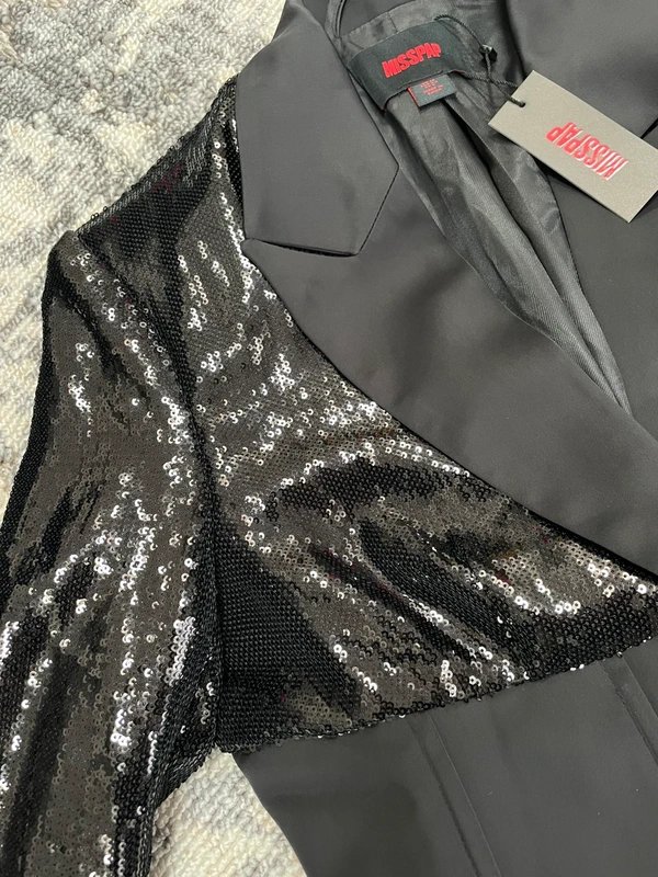 The Misspap Sequin Corset Blazer Dress in Black is available in sizes M.