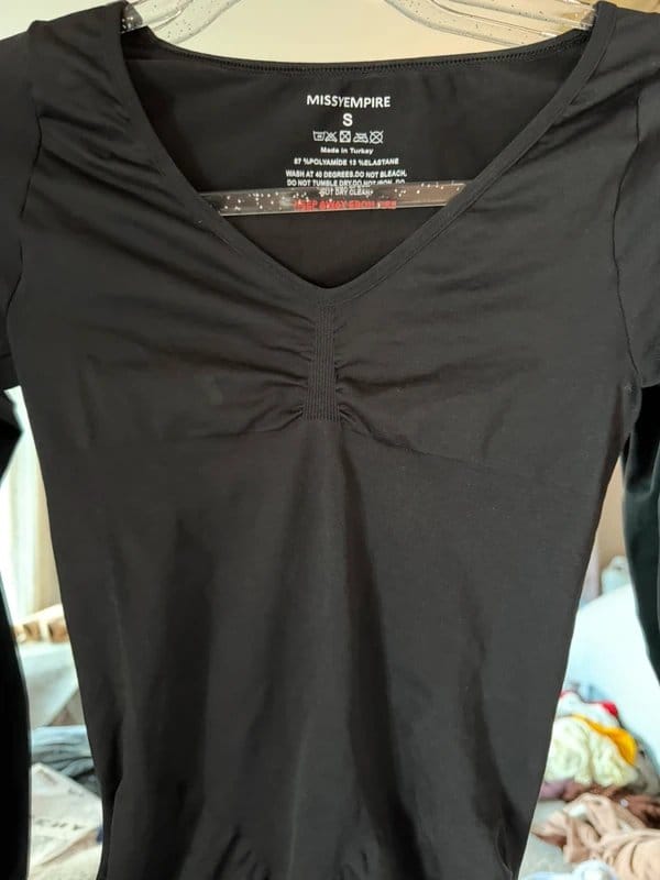 The Missy Empire V-Neck Bodysuit in Black is made from polyester, elastane.
