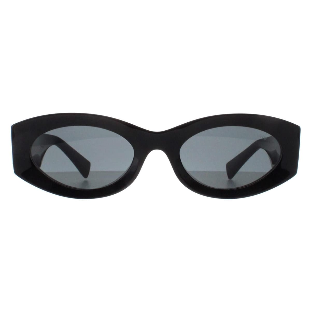 Stylish Miu Miu Oval Black Dark Grey MU11WS Sunglasses with a graceful oval frame crafted from high-quality acetate. The lenses provide unparalleled UV protection. Accented with the iconic Miu Miu logo on the temples.