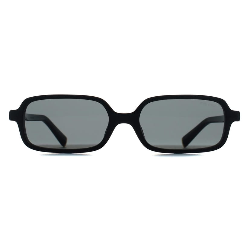 Modern rectangle sunglasses in black dark grey from Miu Miu. Crafted with high-quality materials, these glasses offer a sleek, retro-inspired design perfect for everyday wear.
