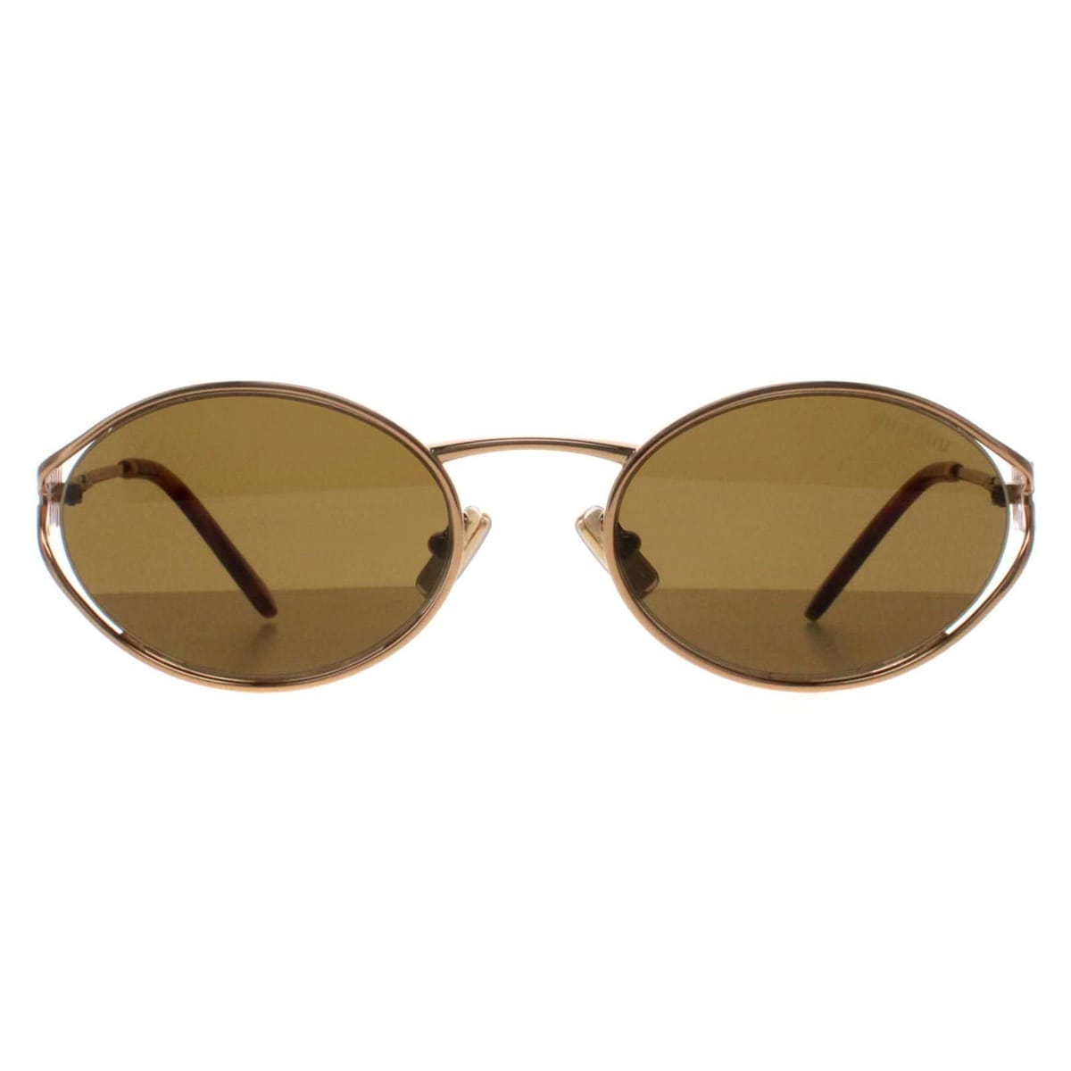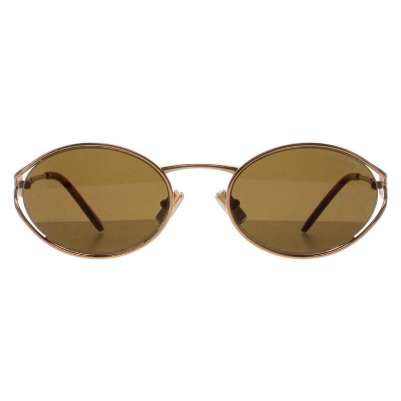 View Debenhams's returns policyThese Miu Miu sunglasses feature an oval brass frame with a gold finish and brown lenses. Crafted from high-quality acetate, they offer superior UV protection. A perfect blend of contemporary style and timeless luxury.