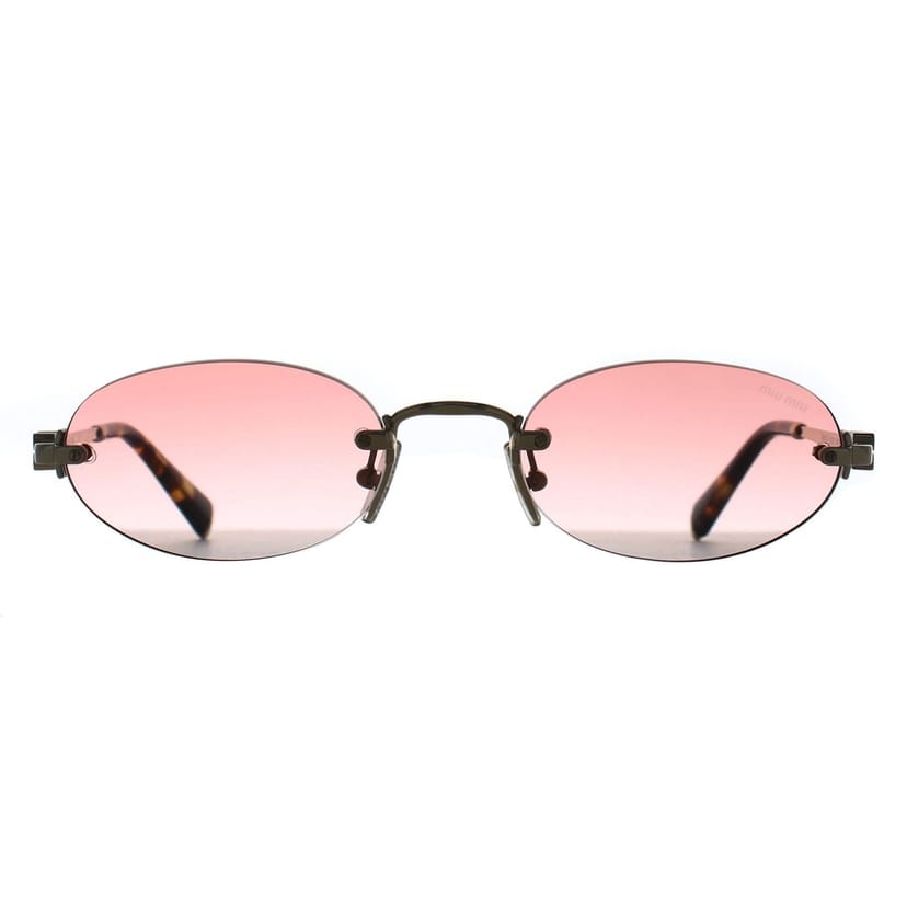View Debenhams's returns policyThese oval sunglasses from Miu Miu feature a pale gold frame with a clear gradient pink lens. Combining contemporary structure with delicate detailing, they offer a modern yet refined look. Perfect for adding a touch of luxury to any outfit.