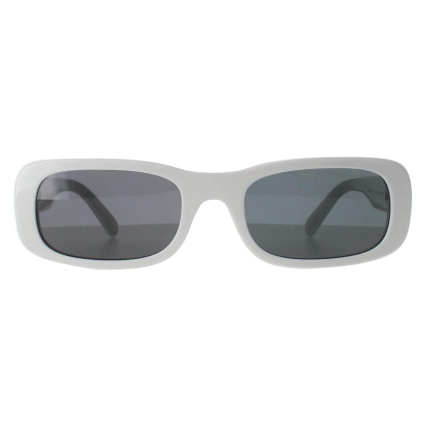 Sleek rectangle sunglasses from Miu Miu in a white ivory and dark grey hue. Crafted from premium acetate, these sunglasses offer both durability and a lightweight feel. The lenses provide superior UV protection and add a sophisticated touch of mystery.