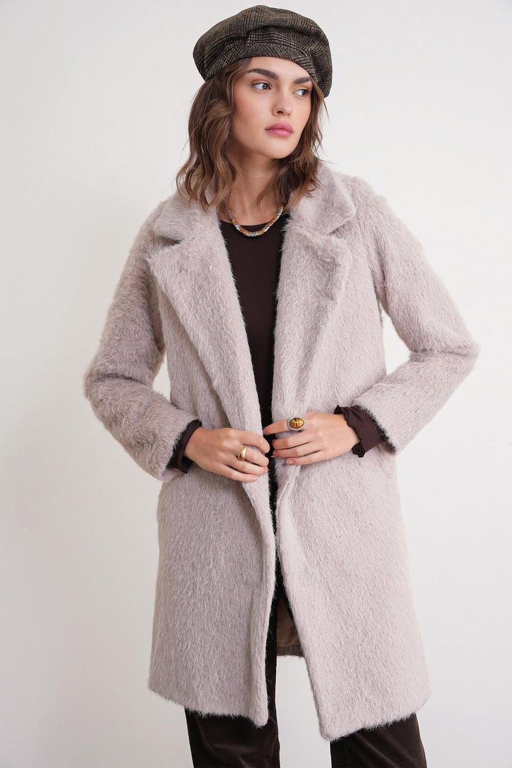 The MixRay Beige Textured Long Coat with Jacket Collar is ideal for casual, everyday.