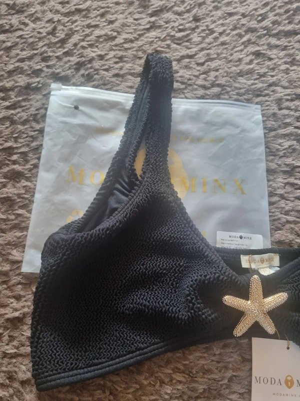 The Moda Minx Black Scrunch Starfish Bikini Top is ideal for beach, party, casual.