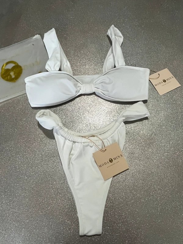 The Moda Minx White Basic Bikini Set is available in sizes M.