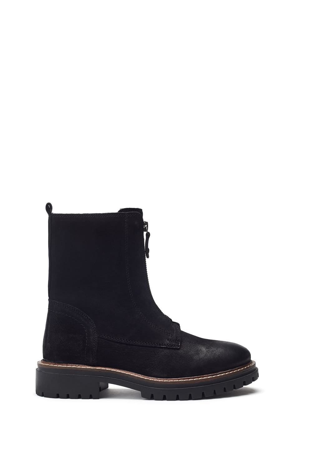 Stylish black suede ankle boots by Moda In Pelle. Featuring a decorative front zip and a functional side zip for easy wear. Perfect for everyday use.