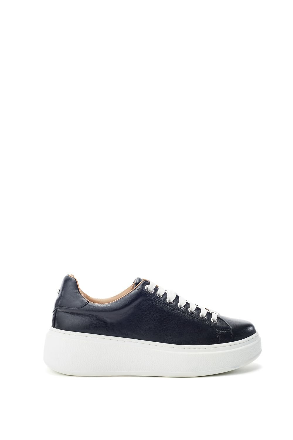 The Moda In Pelle Black Leather Trainers for Women is available in sizes 4, 5, 6, 7.