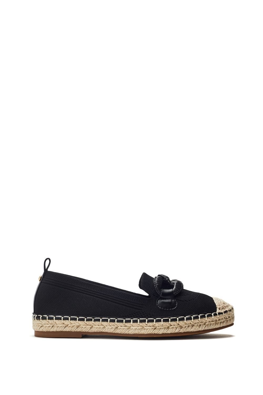 Stylish knitted loafers in black with a chain detail and jute sole. Perfect for casual outings and beach days.