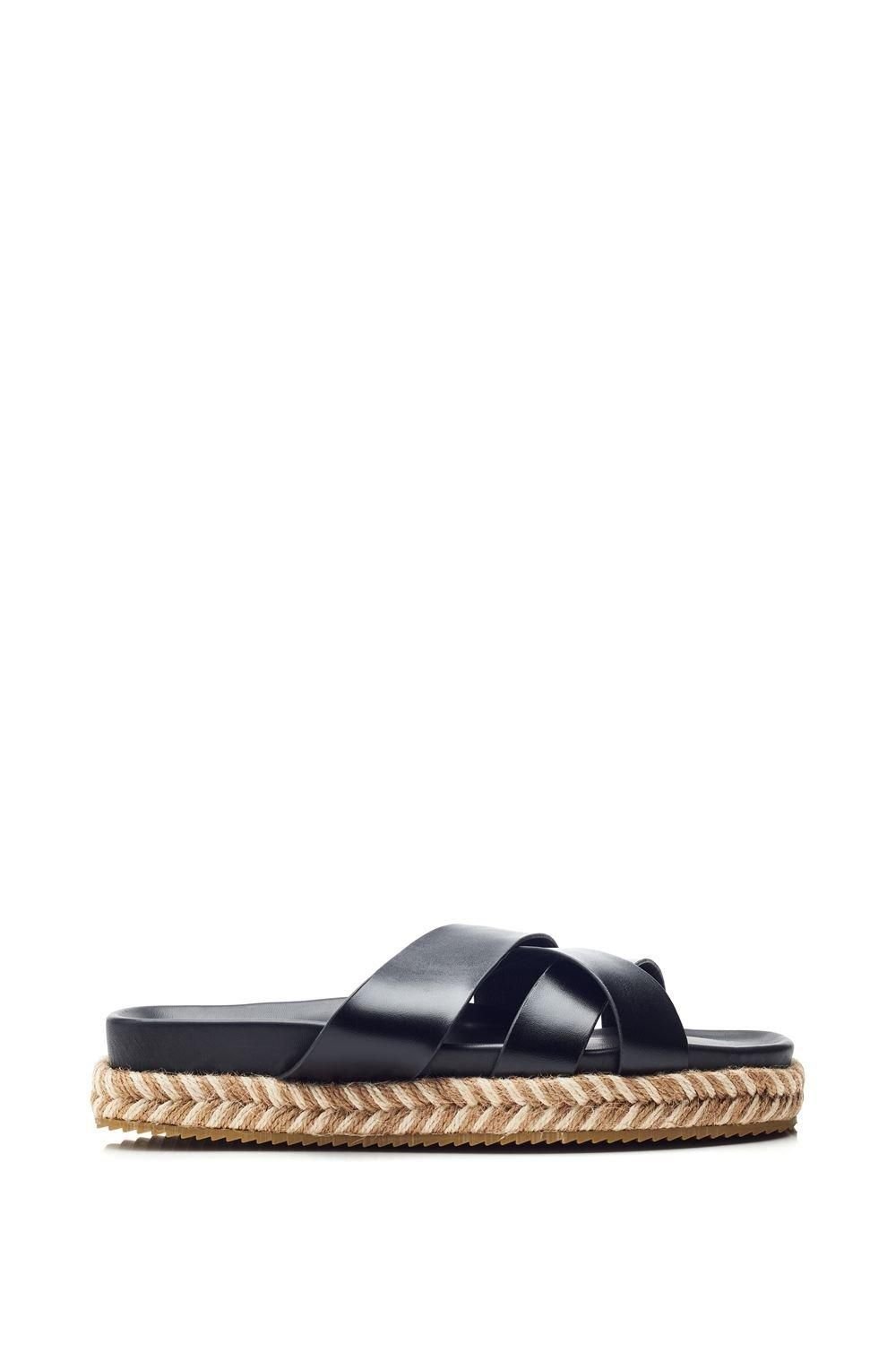 The Moda In Pelle Black Leather Flatform Sandals is made from leather, rope.