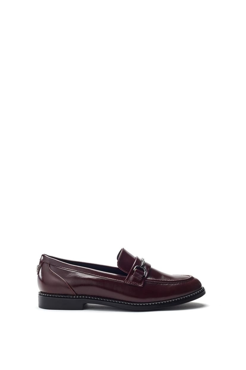Stylish Moda In Pelle loafers in burgundy leather. Featuring a twisted snaffle trim and pin-dot stud embellishments, these loafers offer a premium and polished look. Versatile for both casual and smarter outfits.