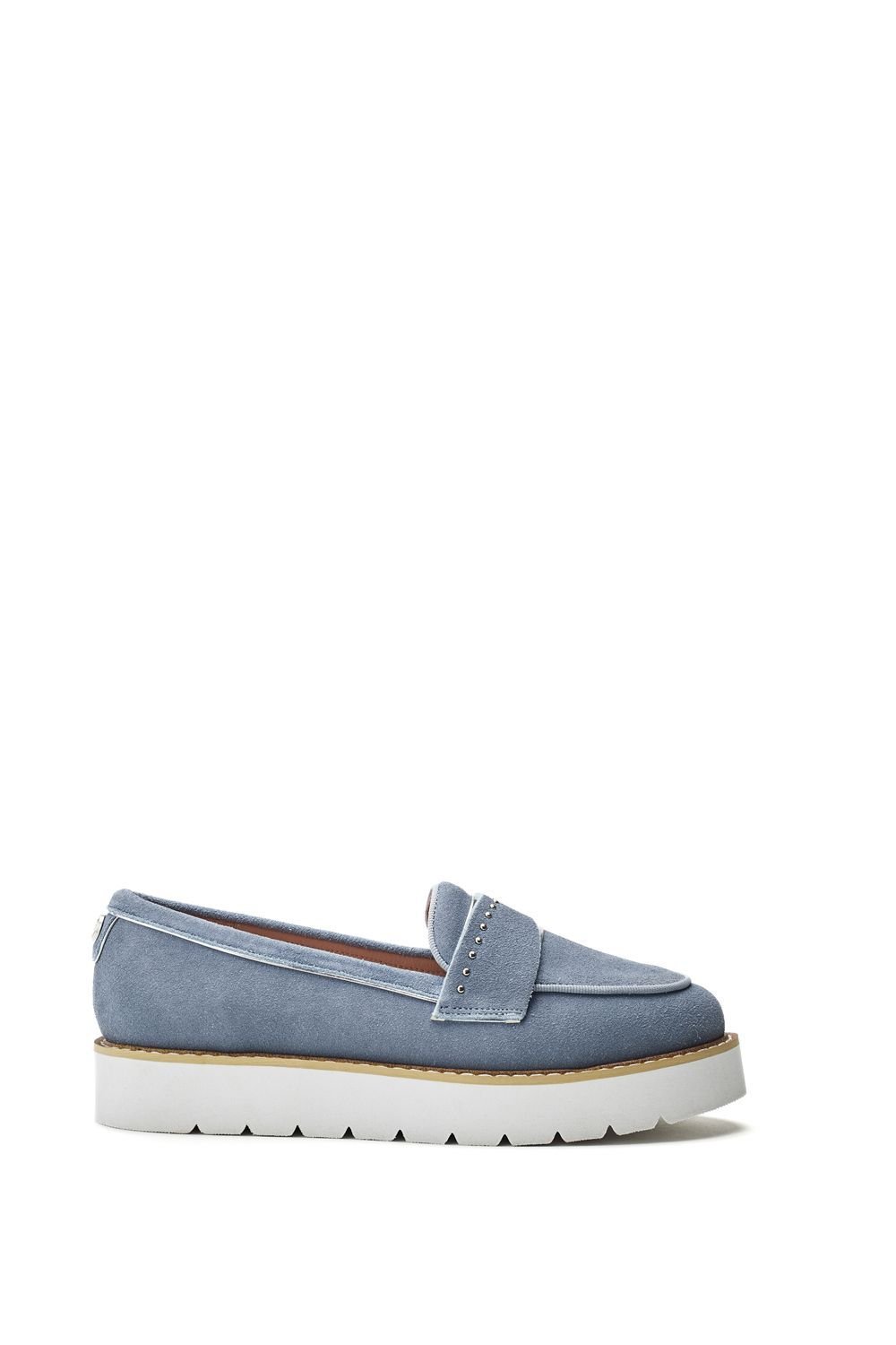 The Moda In Pelle Light Blue Suede Loafers is available in sizes 3, 4, 5, 6, 7, 8.