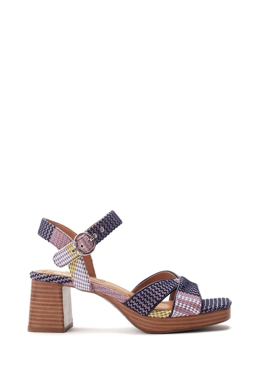 The Moda In Pelle Navy Textile Heeled Sandals is available in sizes 4.
