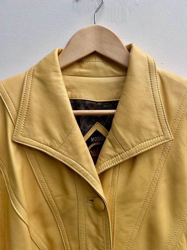 The modAS Vintage 90s Butter Yellow Lambskin Leather Jacket is available in sizes L.