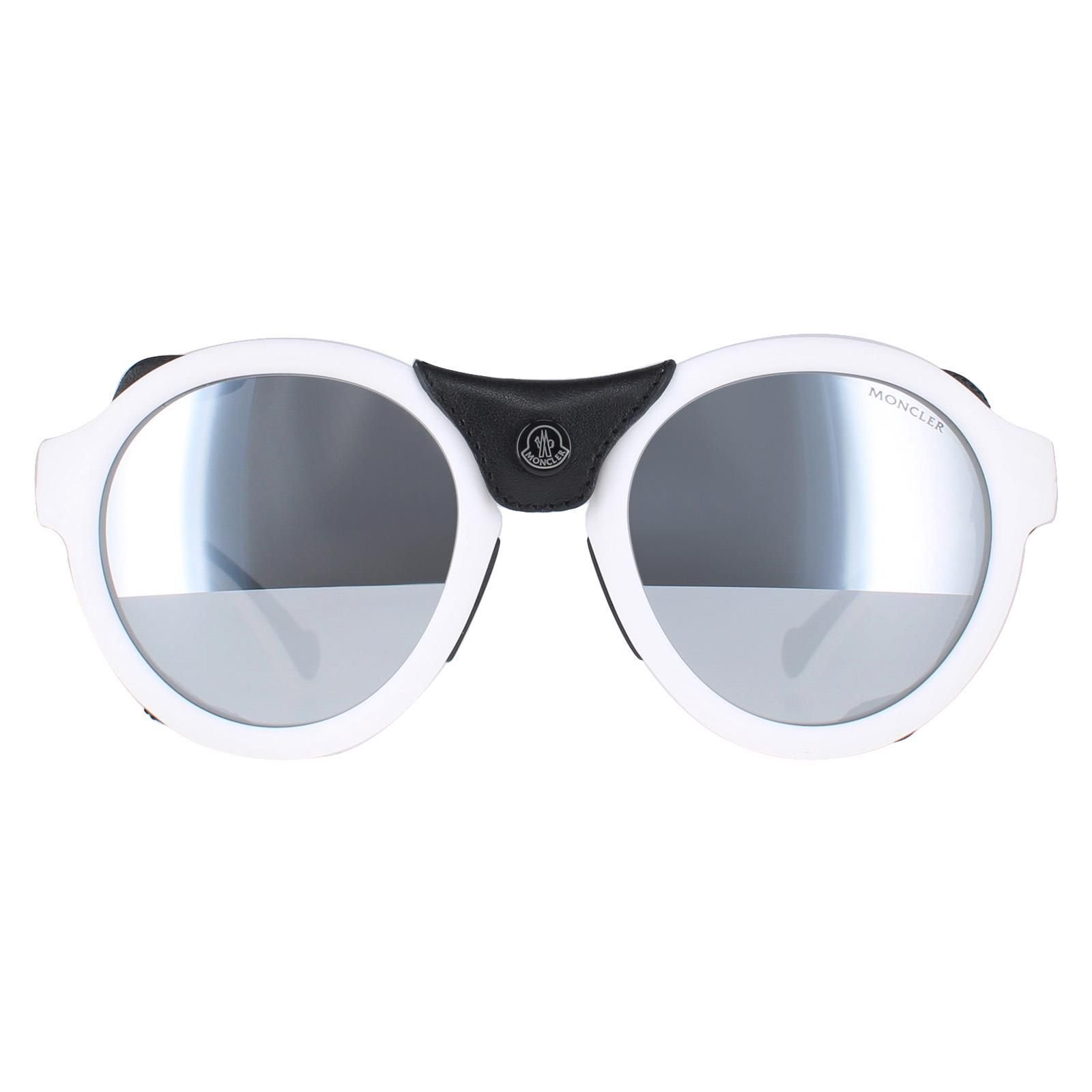 The Moncler Men's Round White Black Leather Grey Silver Mirror ML0046 is available in sizes ONE SIZE.