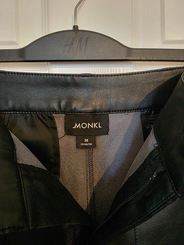 The Monki High Waist Faux Leather Trousers is available in sizes S.