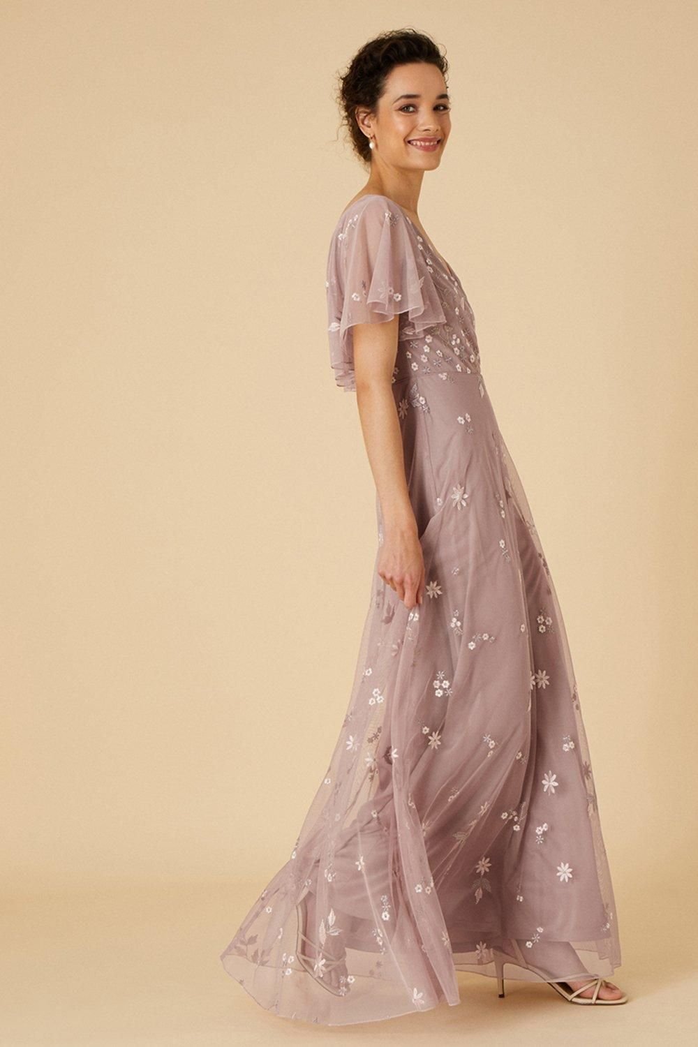 A stunning maxi dress in nude pink tulle with delicate botanical embroidery throughout. Ideal for special occasions.