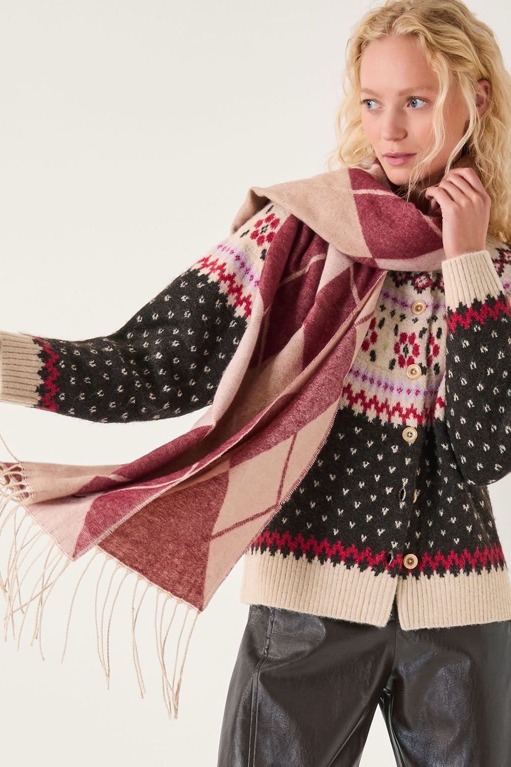 “Pair with light layers like a cream turtleneck and dark wash jeans for a casual autumn look.”