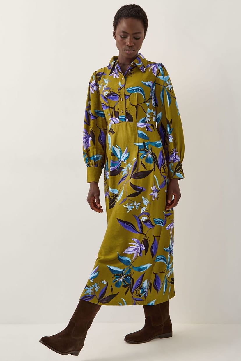 The Monsoon Green Floral Print Midi Dress is ideal for casual, evening, date-night.