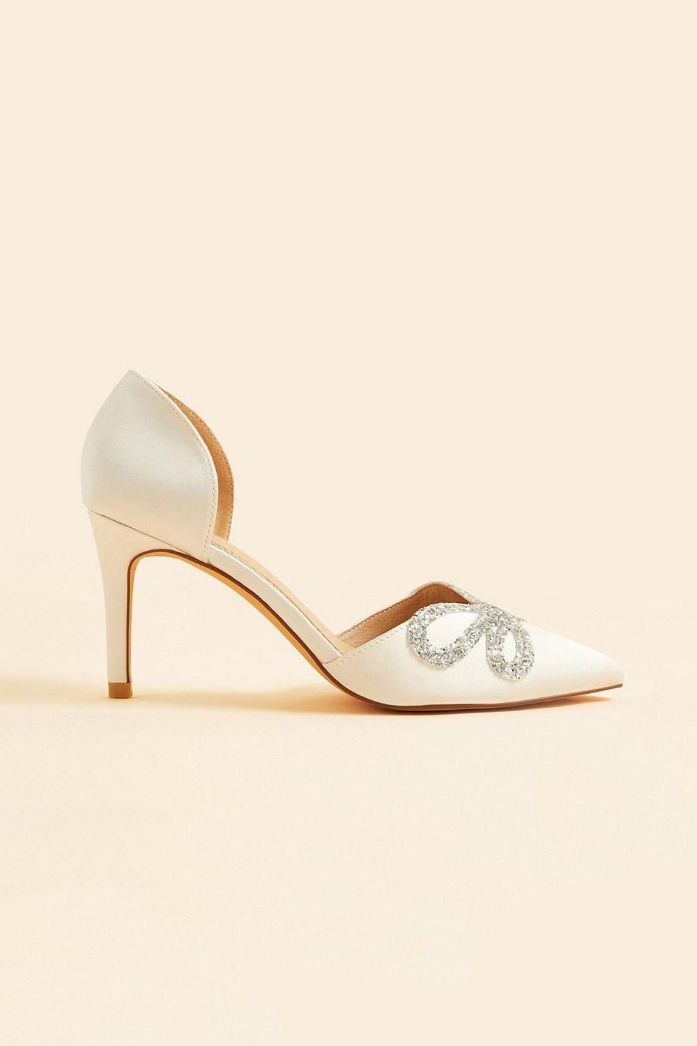 The Monsoon Ivory Satin Bridal Court Heels with Glitter Bow is made from satin, glitter.