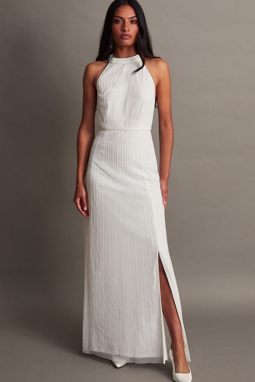 The Monsoon Ivory Embellished Halter Bridal Dress is available in sizes 16, 18.