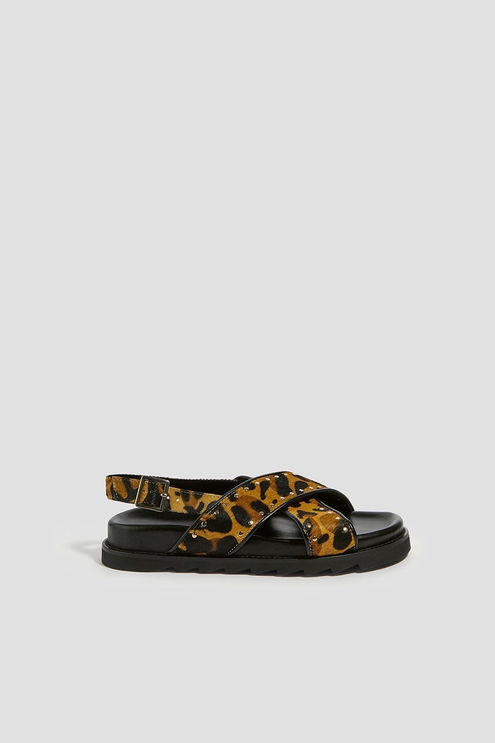 The Monsoon Leopard Print Sandals Natural is made from leather, rubber.