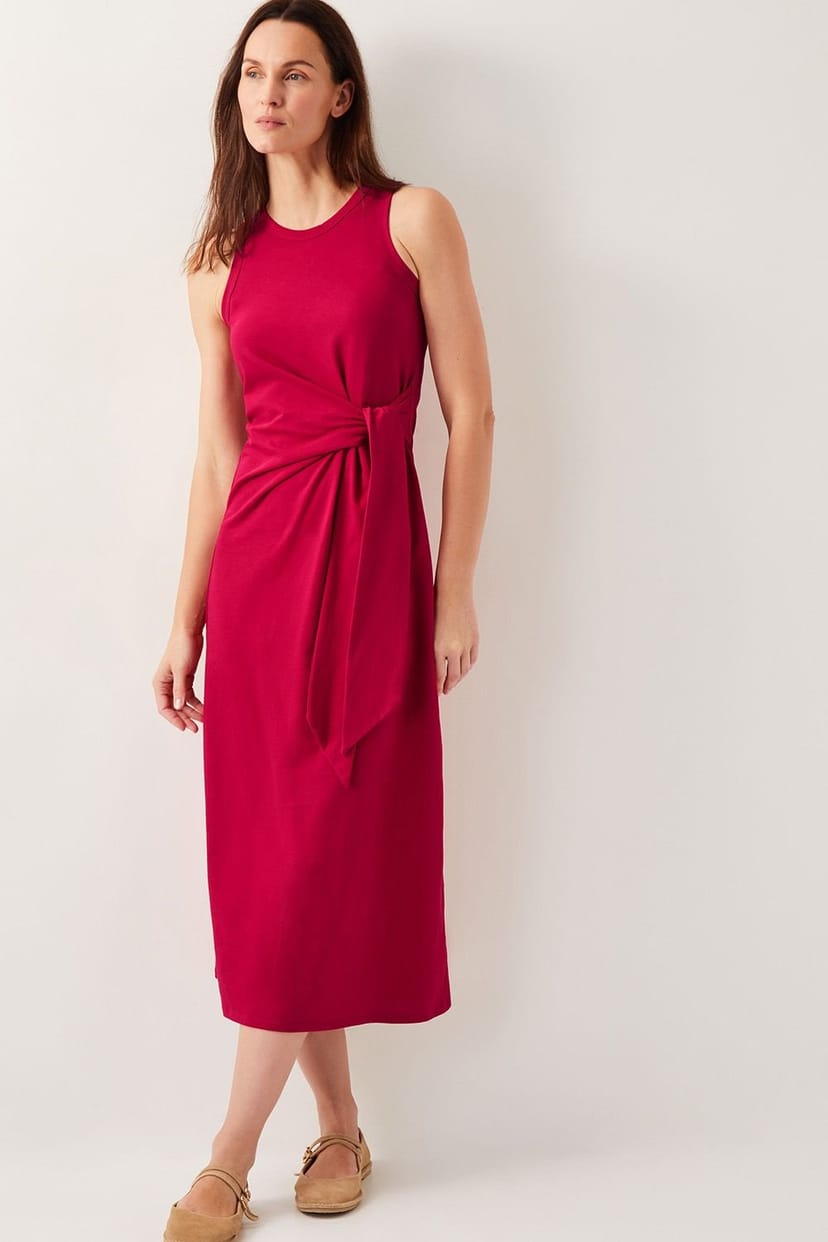 The Monsoon Red Sleeveless Tie-Side Midi Dress is ideal for casual, evening, date-night.