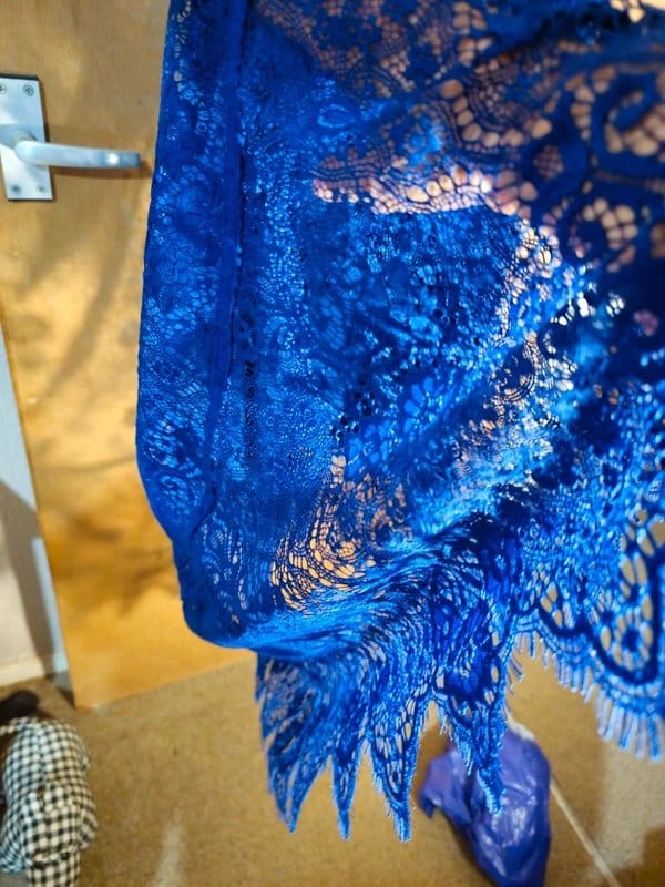 The Monsoon Midnight Blue Lace Overlay Dress is made from lace, lining fabric.
