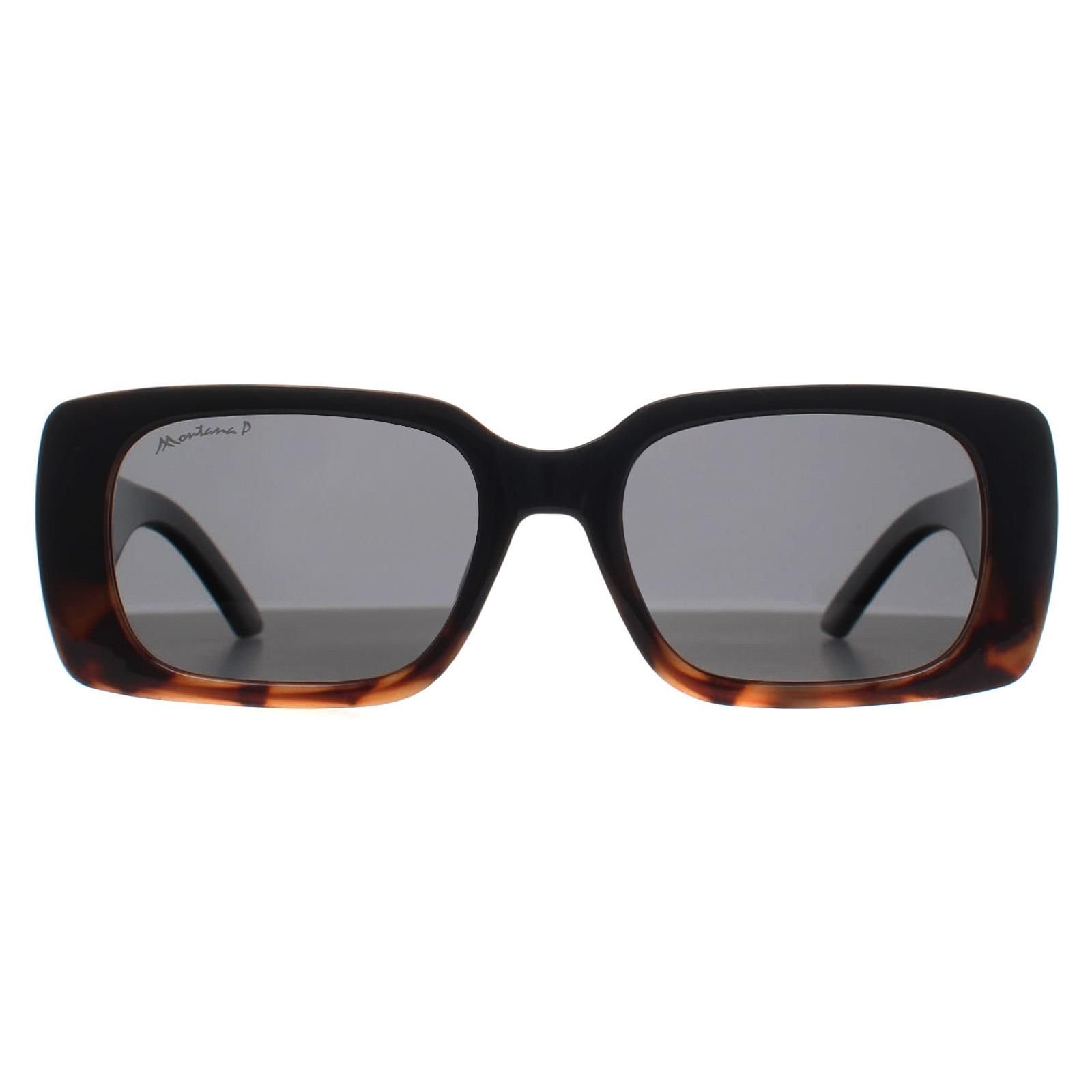 Stylish Montana sunglasses in shiny black with turtle smoke polarized lenses. Designed for superior sun protection and comfort, these glasses enhance clarity and reduce glare.