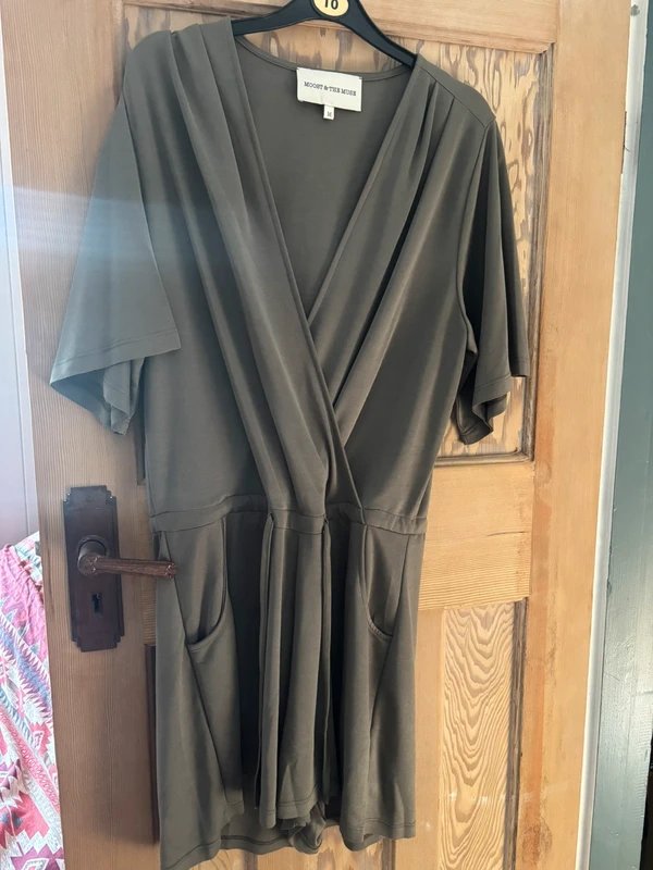 Khaki Bodysuit by MOOST Wanted. Loose fit wrap style. Perfect for casual wear. Crafted from lightweight fabric with a soft drape. Features a wrap-around neckline and adjustable straps. Ideal for a relaxed, everyday look.