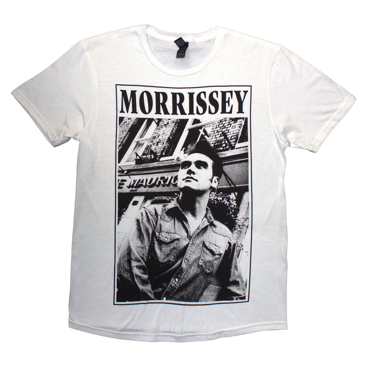 Classic Morrissey t-shirt in white with a printed band logo. Made from 100% ringspun cotton for a soft touch and comfortable fit. Perfect for casual wear.