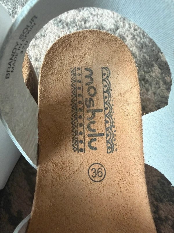 The Moshulu Strappy Wedge Sandals in White and Yellow is made from leather.