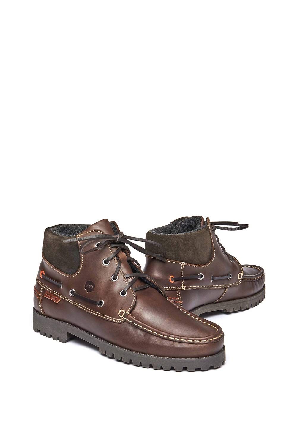 The Moshulu Brown Nubuck Lace-Up Boots for Men is made from nubuck, leather.