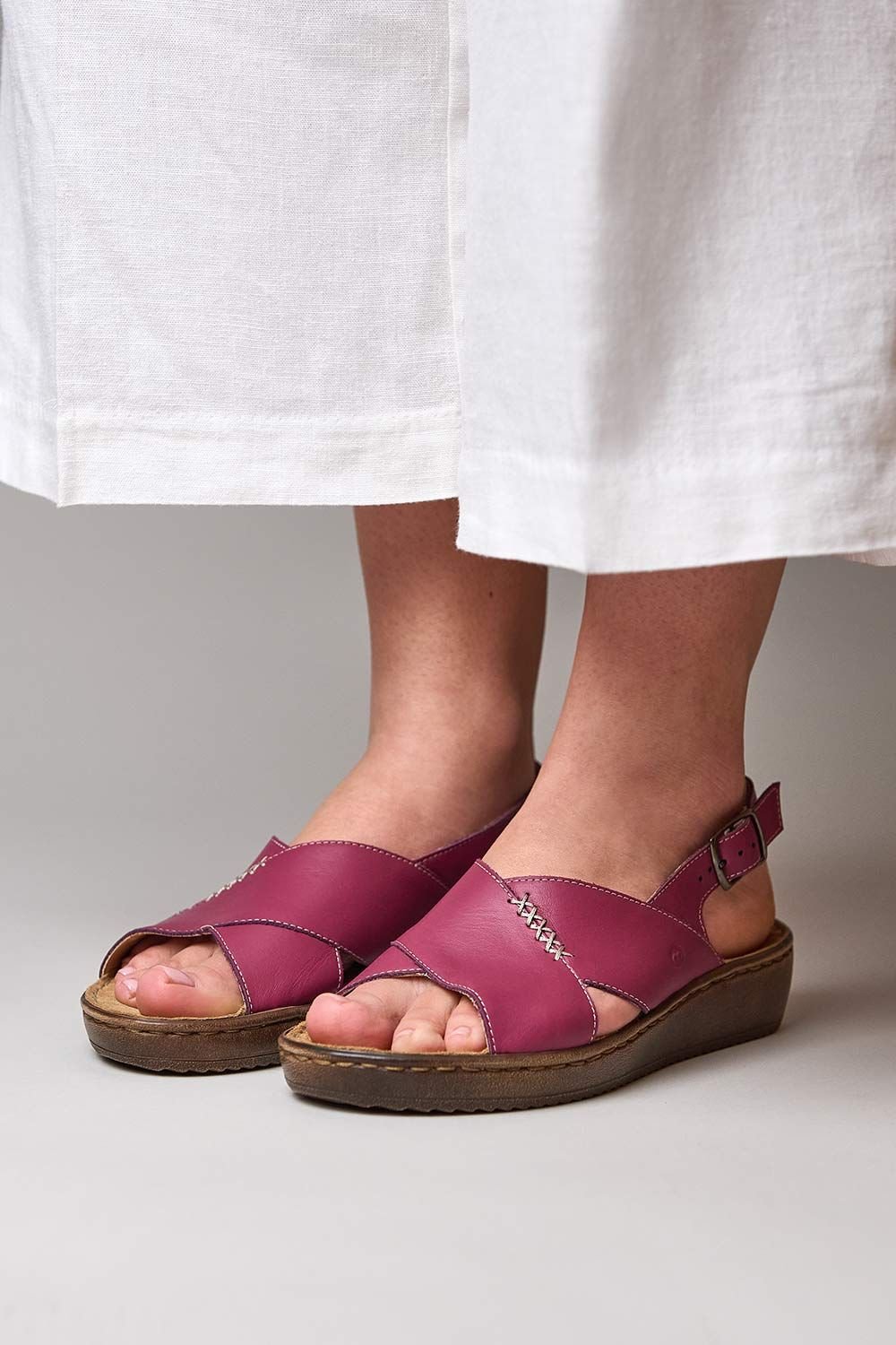 The Moshulu Fuchsia Leather Slingback Crossover Sandals is ideal for casual, everyday, summer.